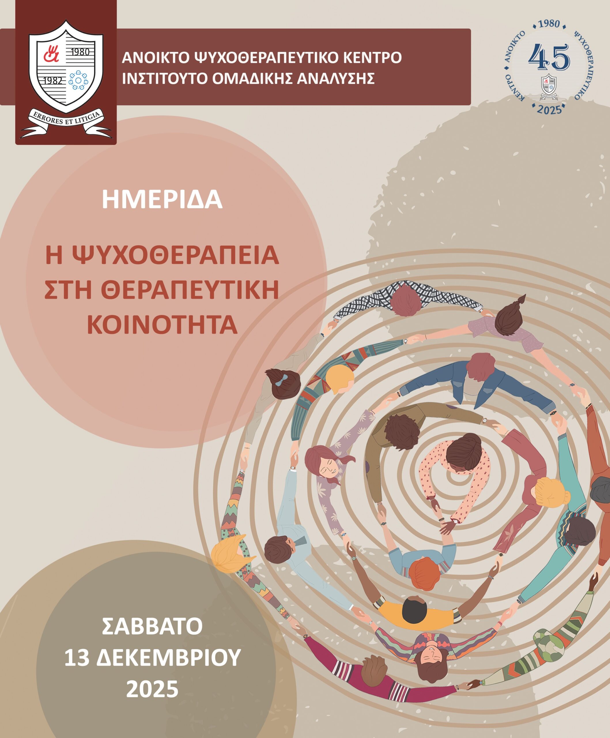 Tό Ἀνοικτό Ψυχοθεραπευτικό Κέντρο, τό Ἰνστιτοῦτο Ὁμαδικῆς Ἀνάλυσης Ἀθηνῶν, τό Ἰνστιτοῦτο Ψυχοδράματος – Κοινωνικοθεραπείας καί ἡ Ἑταιρεία Θεραπευτῶν Κοινότητας, Ψυχοδράματος καί Κοινωνικοθεραπείας συν-διοργανώνουν Ἡμερίδα μέ θέμα: